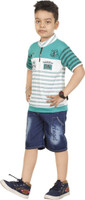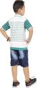 Featuring a printed top combined with subtly faded shorts, this boys’ T-shirt and shorts set blends playful details with gentle tones. The top includes graphic prints with stripes that draw interest without appearing too loud, creating a look suited to day-to-day wear. The shorts display typographic elements that introduce a modern feel while maintaining a tidy appearance. Moreover, the contrast between the printed top and the understated bottoms creates a clear visual separation, allowing this set to appear coordinated without feeling overly uniform.