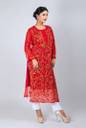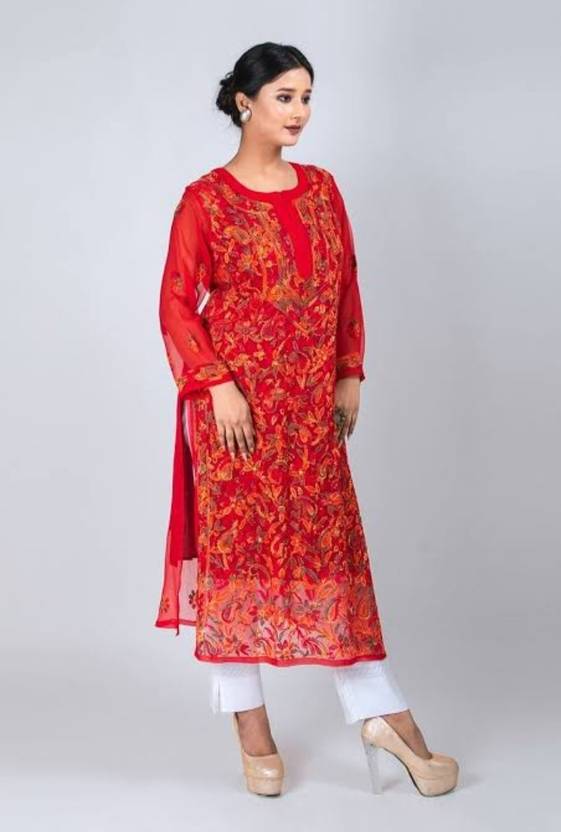 Women Chikan Embroidery Georgette Straight Kurta (Red)