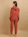 Featuring long sleeves, the top from this set can keep you warm during chilly nights. And, sporting a comfortable fit, it allows for unrestricted movement. Moreover, thanks to the hooded neck, you can stay cosy and snug. And, the kangaroo pockets can offer convenient storage for small items. Moreover, boasting an elasticated waist, the pants from this set can ensure a secure fit. Hence, thanks to their easy wearability, these pants are ideal for lounging around the house.