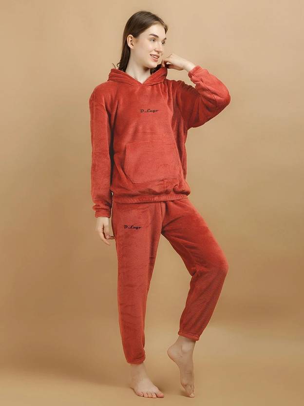 Featuring long sleeves, the top from this set can keep you warm during chilly nights. And, sporting a comfortable fit, it allows for unrestricted movement. Moreover, thanks to the hooded neck, you can stay cosy and snug. And, the kangaroo pockets can offer convenient storage for small items. Moreover, boasting an elasticated waist, the pants from this set can ensure a secure fit. Hence, thanks to their easy wearability, these pants are ideal for lounging around the house.