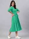 Jollity Women Fit and Flare Green, Grey Midi/Calf Length Dress