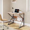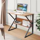 lukzer Engineered Wood Computer Desk with Metal Legs Modern Simple Style Study Desk Engineered Wood Study Table (Free Standing, Finish Color - Table with Book Shelf (MST-001/ 100x50x78cm / Oak Brown- Top/Black), DIY(Do-It-Yourself))