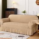 lukzer Polyester 2 Seater Sofa Checkered Cover (Pack of 1 Sand Beige)