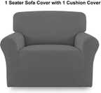 lukzer Polyester 1 Seater Sofa Striped Cover (Pack of 1 Plain Grey)