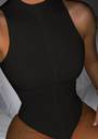 Bodysuit with crew neck, sleeveless, solid colour, slim fit, regular length, and snap button closure. • Neckline: Crew Neck • Sleeve Length: Sleeveless • Sleeve Type: No sleeves • Pattern: Solid • Fit: Slim fit • Length: Regular length • Closure: Snap button closure • Popular Element: Ribbed fabric