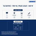 LUMINOUS 700 VA with 2 Year Warranty Pure Sine Wave Inverter (power sine 800/12v-230v, 50hz)
