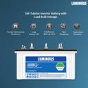 Built with robust tubular plates, the Luminous 150 Ah Tubular Battery ensures long-lasting performance.