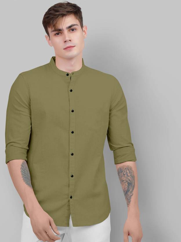 LUQATTIΒ Men Regular Fit Solid Mandarin Collar Casual Shirt