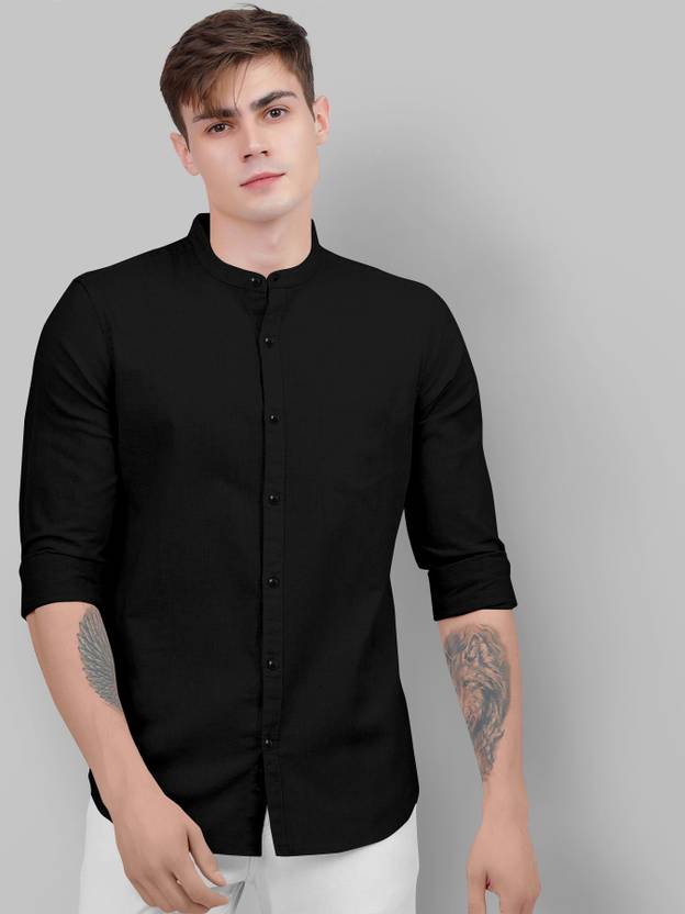 LUQATTIΒ Men Regular Fit Solid Mandarin Collar Casual Shirt