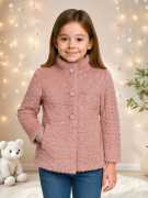 Keep your little one cozy and stylish this season with this elegant winter coat. Designed with a soft fabric, this coat offers both comfort and warmth. The front button closure with embellished buttons adds a charming touch, while the side pockets make it practical for everyday wear. Perfect for casual outings, parties, or family gatherings, this coat is a must-have for your child’s winter wardrobe.