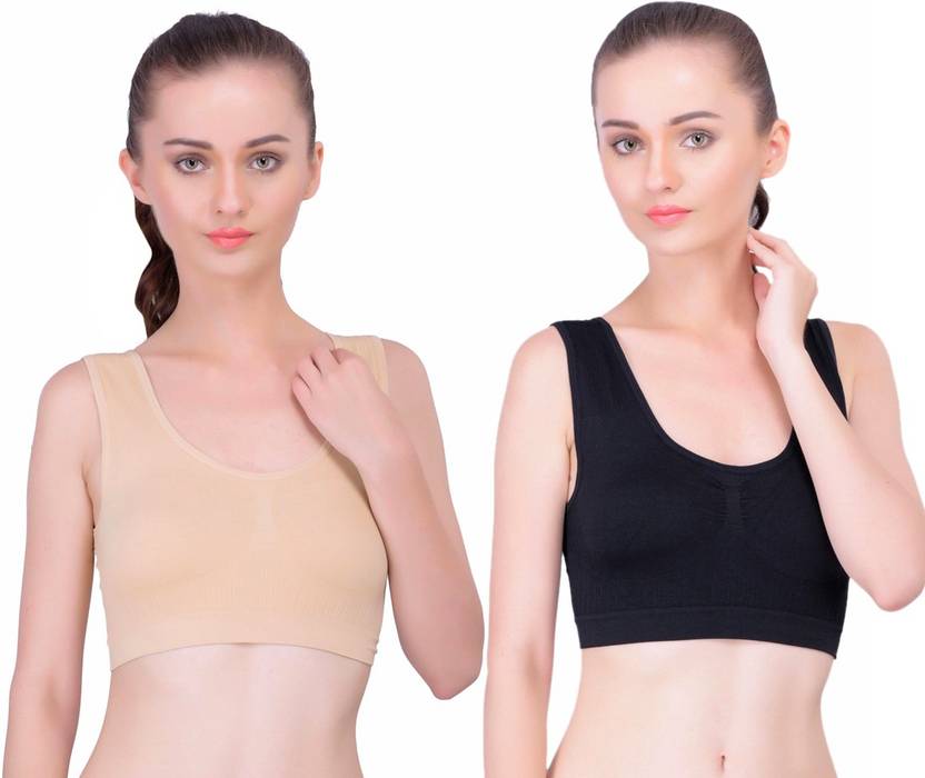 Lure Wear Pack of 2 Women Training/Beginners Non Padded Bra (Black, Beige)