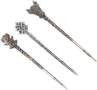 LURIYAA'S Metal Handicrafted Oxidised Bun Tibbet Petern Hair Stick for Women Combo 3 Piece Bun Stick (Silver)