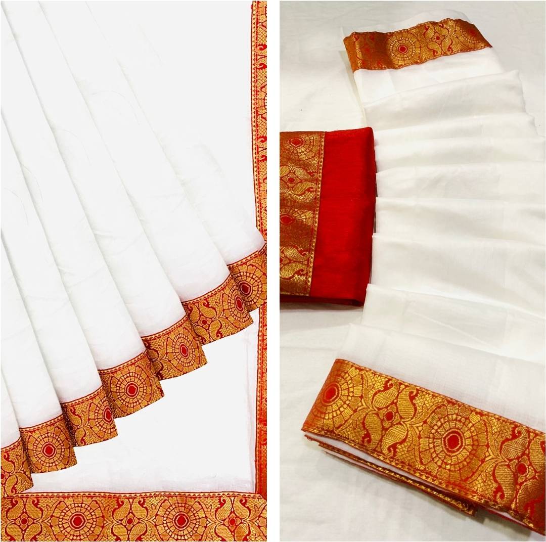 LUVITUS Solid/Plain Chanderi Pure Cotton Saree (Red)