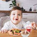 LuvLap 4 - Piece Baby Tableware Set, Suction Plate, Bowl, Glass and Spoon for Kids or Infants, Attractive Colors - BPA Free Plastic (Peach & Red)
