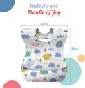 As the baby is introduced to solid food, feeding becomes a messy affair. LuvLap Disposable Bibs are designed keeping baby’s hygiene & comfort in mind. The crumb catcher catches everything that comes out of the baby's mouth or falls off the baby’s spoon. After the meal, it also serves as a soft napkin to clean baby's mouth. Our lightweight & waterproof disposable bib is gentle on baby's delicate skin. LuvLap Disposable Bibs are suitable for feeding baby at home or even outside.