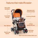 The Reversible handlebar lets you maneuver the stroller easily both in the forward and the reverse direction.