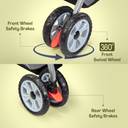 The front and back wheels are sturdy and offer easy maneuverability, especially while turning the stroller. They also have easy-to-apply brakes so you can easily bring the stroller to rest.