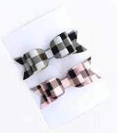 LuvSaa Essentials Check Print Petite grey/pink Hair bows|MADE WITH LEATHER/GLITTER SHEET Back Pin (Grey, Pink)