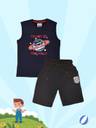 Boys Casual T-shirt Shorts (Navy Blue & Black)