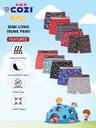 Thanks to their playful and quirky all-over prints, these boys' trunks add a cheerful touch to daily wear. Furthermore, the different patterns bring variety, making them suitable for home use and school routines. With assorted patterns in this pack, it becomes easy to rotate them throughout the week without repetition. The prints appeal to a young, fun-loving style while also supporting regular wear with ease.