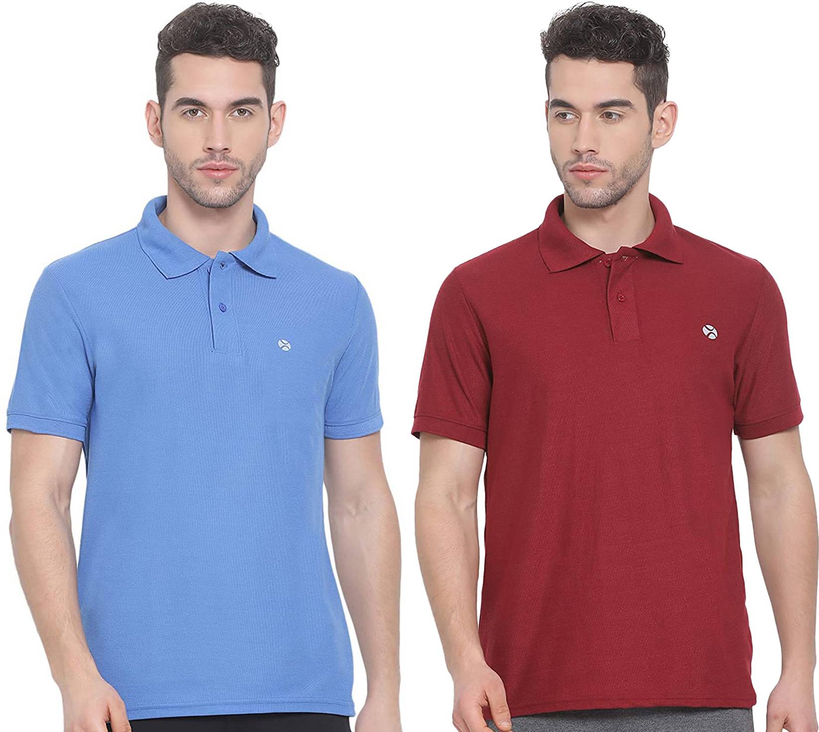 Lux NitroΒ Pack of 2 Men Solid Polo Neck Pure Cotton Multicolor T-Shirt