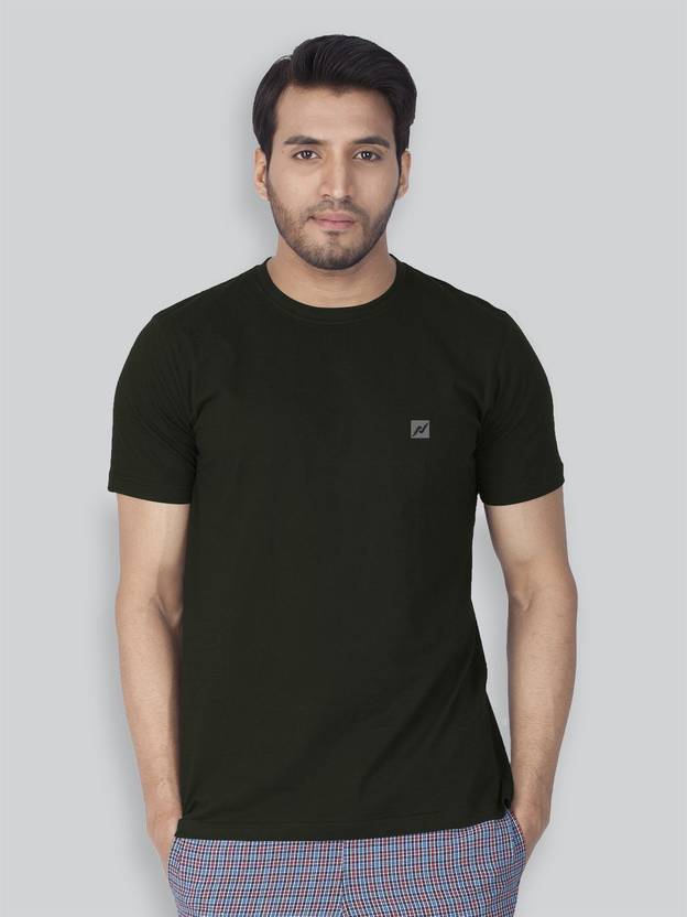 Lux Nitro Men Solid Round Neck Cotton Blend Black T-Shirt