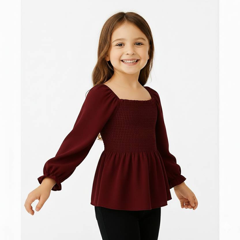 LuxeStyle Girls Casual Crepe Top (Maroon, Pack of 1)