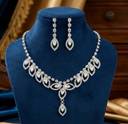 Elegant silver plated necklace and earring set made from alloy with cubic zirconia stones. Lightweight, skin friendly and perfect for weddings, parties and festive occasions.