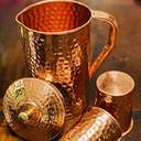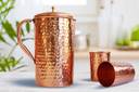 Shakuntla Handicraft Luxury 1.25 litre Copper Jug with Lid & 6 Water Glass 200 ml Jug Glass Set (Copper)