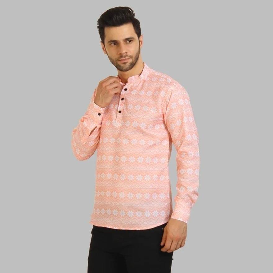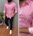 LUXURYCROWN Men Printed Casual Pink Shirt