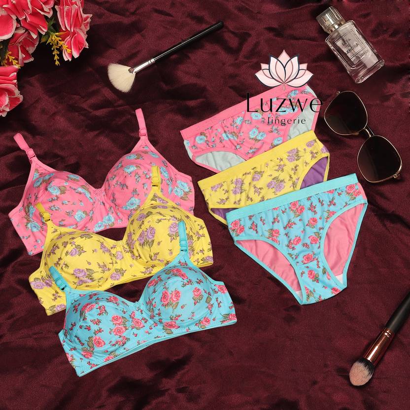 Bra & Panty Set Printed Pink, Blue, Yellow Lingerie Set