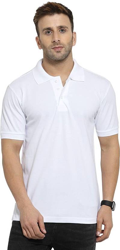 Men Solid Polo Neck Polycotton White T-Shirt