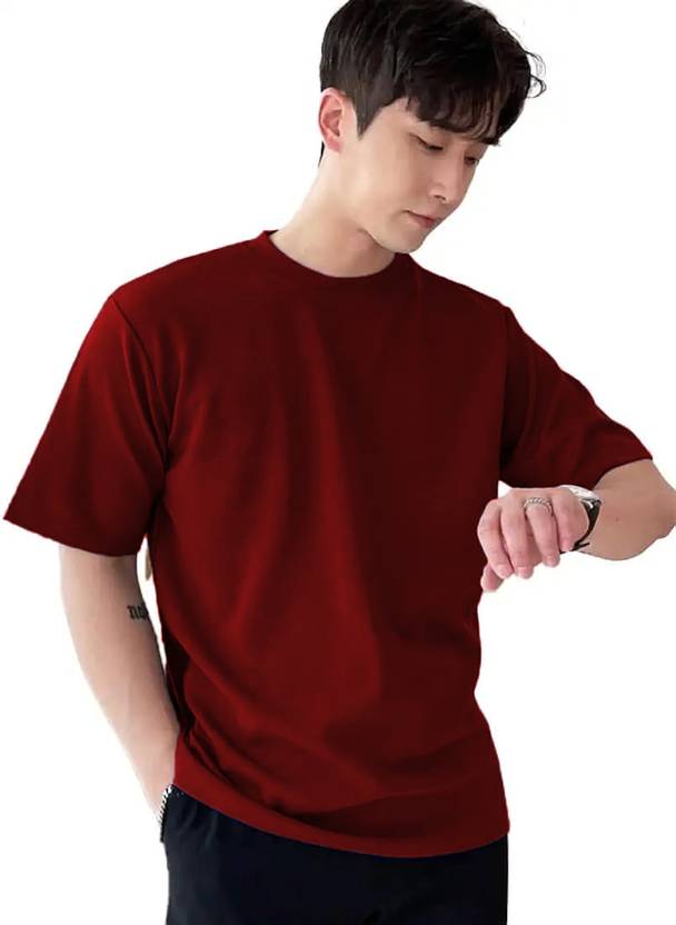 Ashkart Solid Men Round Neck Maroon T-Shirt