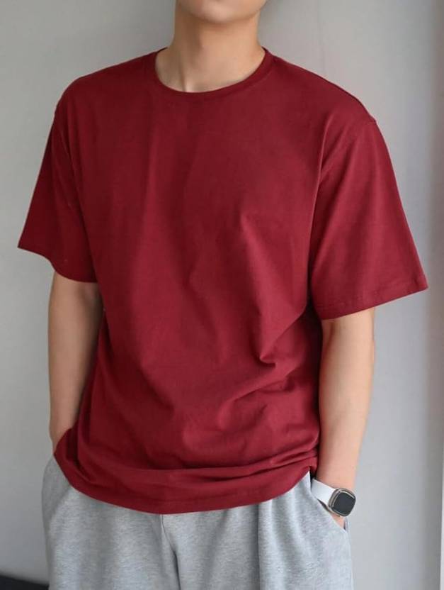 LWEXS Solid Men Round Neck Maroon T-Shirt