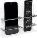 LXET Acrylic Double Mobile Stand Dual Phone Charging Holder TV AC Remote Stand for Home Office Bedroom Hotel Wall Multipurpose Mobile Stand Acrylic Key Holder (2 Hooks, Multicolor)