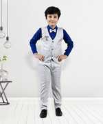 Prabhuratan offers a special festive list for young children. The range has been thoughtfully designed with your baby's comfort in mind. Grab this outfit, which includes a shirt, a Waistcoat, a Bow and Broch and Pant, and make your young one the focus of attention this holiday season. There is a great selection of Prabhuratan kid's clothing sets, including ethnic apparel, waistcoats, and clothing for children. With the help of our specially designed kids ethnic sets, you might have the comfort you require in the style you like.