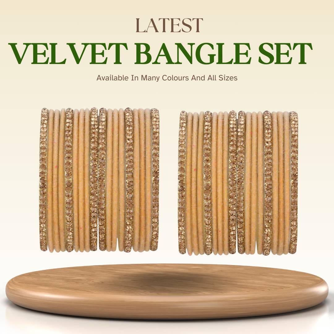golden color bangles ;; velvet bangle set ;; metal bangle set