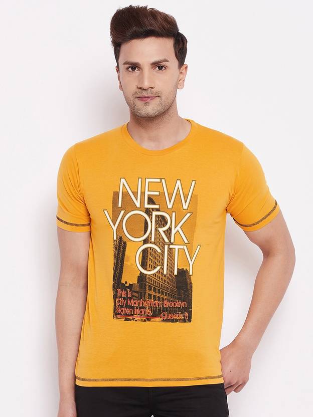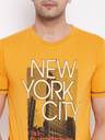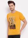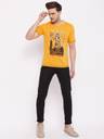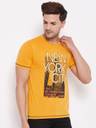 Men Printed Round Neck Cotton Blend Yellow T-Shirt