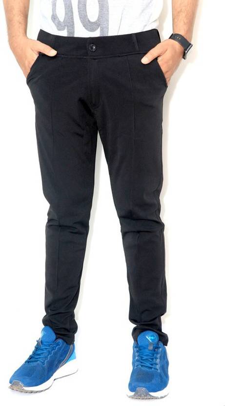 Men Solid Black Track Pants