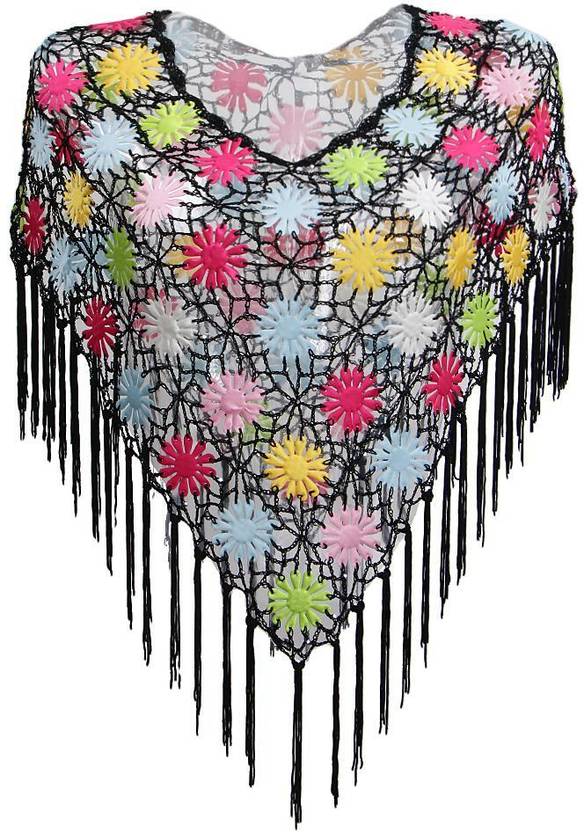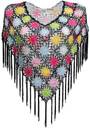 Boho Cover Up Hollow Out Capelet Crochet Floral Tassel Shawl Summer Black