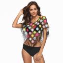 Boho Cover Up Hollow Out Capelet Crochet Floral Tassel Shawl Summer Black Solid Women Bikini Multicolor Swimsuit