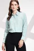 Step into effortless elegance with Lyla Fashion’s full-sleeve striped shirt, crafted in premium polyester for a sleek, wrinkle-resistant finish. With its flattering hip-length cut and timeless stripe pattern, this piece blends modern charm with everyday ease. Designed to transition seamlessly from summer to winter, it’s perfect for layering, styling solo, or dressing up with accessories. A truly aesthetic wardrobe essential that works all year round.