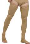 LYMPHACURE Compression Stockings for Varicose Veins with ZIP | FULL LEG | COTTON Knee Support  (Beige)