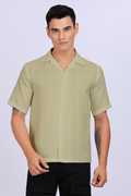 Elevate your casual wardrobe with this button-up shirt, crafted from a subtle fabric that adds texture without overwhelming the look. Featuring a relaxed fit and a breezy camp collar, this half-sleeved shirt is designed for comfort and effortless style. The muted tone makes it versatile enough to pair with black trousers, denim, or shorts, while the understated pattern lends a touch of sophistication to everyday wear. Whether you're heading out for a weekend brunch or keeping it cool on a summer afternoon, this shirt blends laid-back charm with modern polish.