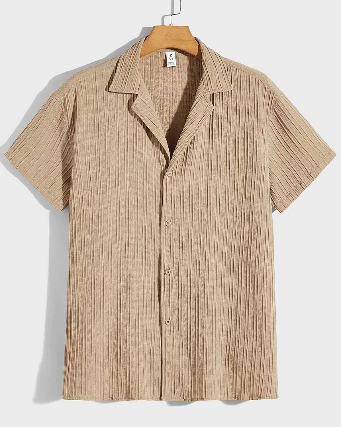 Add a touch of understated elegance to your wardrobe with this button-up shirt, crafted from a textured fabric featuring subtle vertical ridges for added depth and character. Designed with a relaxed silhouette, it boasts half sleeves and a notched collar that lend it a breezy, casual vibe—perfect for warm-weather days or laid-back outings. The five-button front closure ensures ease of wear, while the soft hue and tactile finish make it a versatile piece that pairs effortlessly with jeans, chinos, or shorts. Whether styled for a weekend brunch or a sunset stroll, this shirt offers comfort, charm, and timeless appeal.