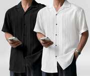 Add a touch of understated elegance to your wardrobe with this button-up shirt, crafted from a textured fabric featuring subtle vertical ridges for added depth and character. Designed with a relaxed silhouette, it boasts half sleeves and a notched collar that lend it a breezy, casual vibe—perfect for warm-weather days or laid-back outings. The five-button front closure ensures ease of wear, while the soft hue and tactile finish make it a versatile piece that pairs effortlessly with jeans, chinos, or shorts. Whether styled for a weekend brunch or a sunset stroll, this shirt offers comfort, charm, and timeless appeal.