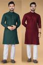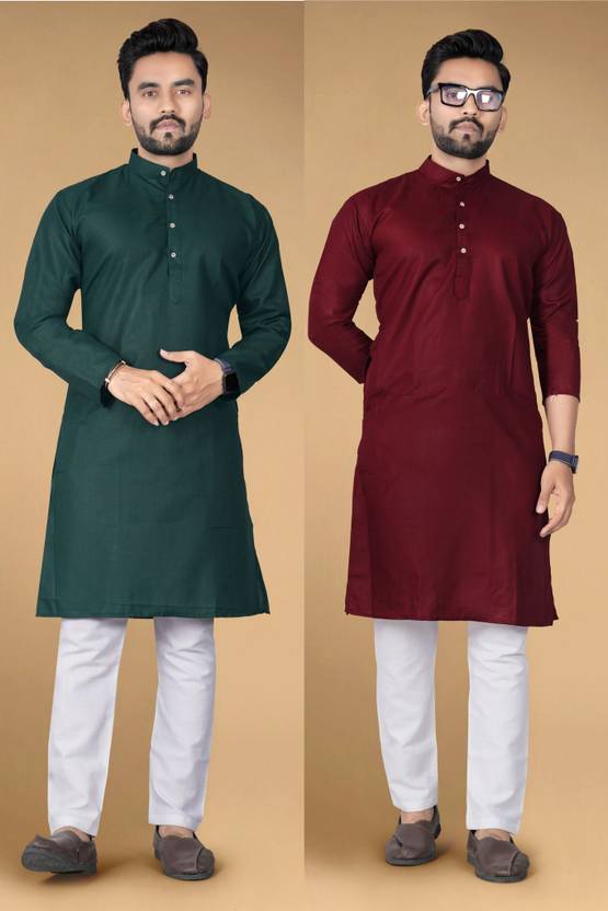 LYPLO Men Solid Straight Kurta (Green, Maroon)