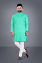 Men Solid Cotton Blend Straight Kurta (Light Green)