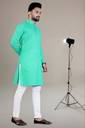 Lyolo Men Solid Cotton Blend Straight Kurta (Light Green)