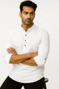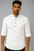 Elevate your traditional style with this elegant kurta for men. Made from a comfortable cotton blend, it features full sleeves with roll-up tabs, a buttoned placket, and a tailored fit that offers both style and ease. Perfect for festive occasions, casual gatherings, or everyday ethnic wear, this kurta pairs well with light-colored or denim bottoms for a clean, refined look.